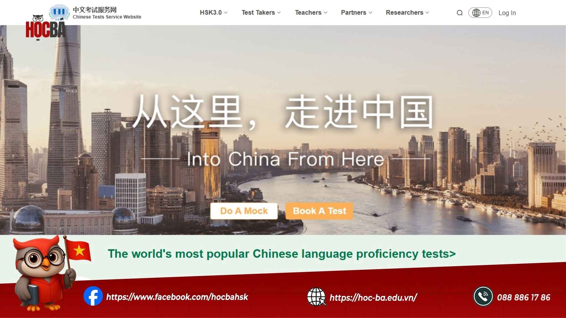 Trang web chinesetest.cn là cổng thông tin chính thức và duy nhất do Hanban/CTI (Trung tâm Hợp tác Ngôn ngữ Trung Quốc Quốc tế) quản lý để tổ chức các kỳ thi năng lực Hán ngữ trên toàn cầu.