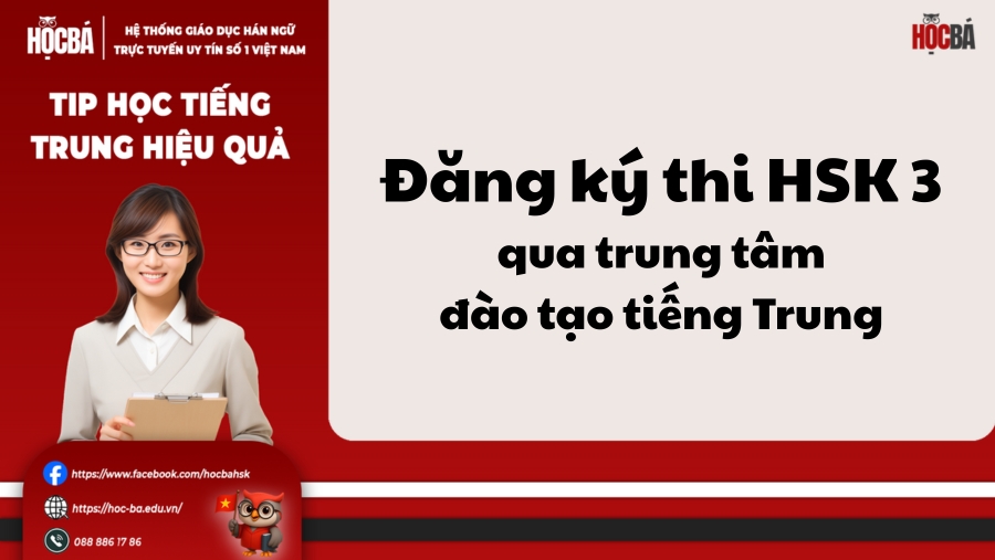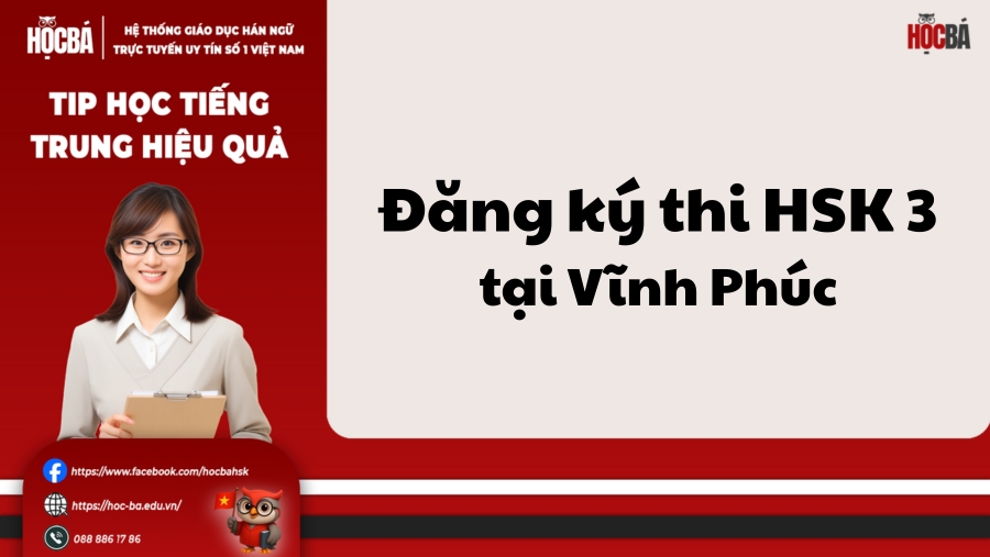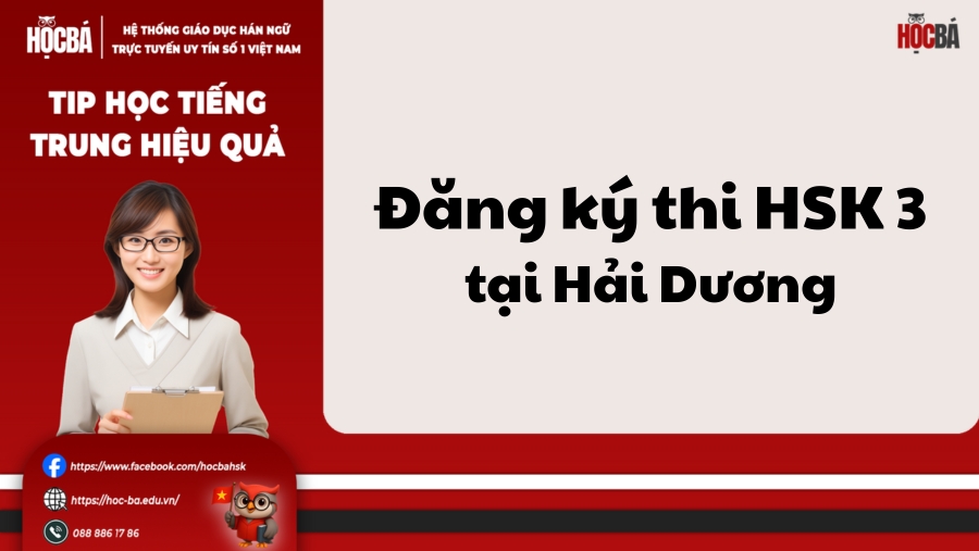 Hướng dẫn chi tiết cách đăng ký thi HSK3 online & trực tiếp. Cập nhật lệ phí, địa điểm thi tại Việt Nam, lịch thi, hồ sơ và kinh nghiệm hữu ích để đăng ký thành công.