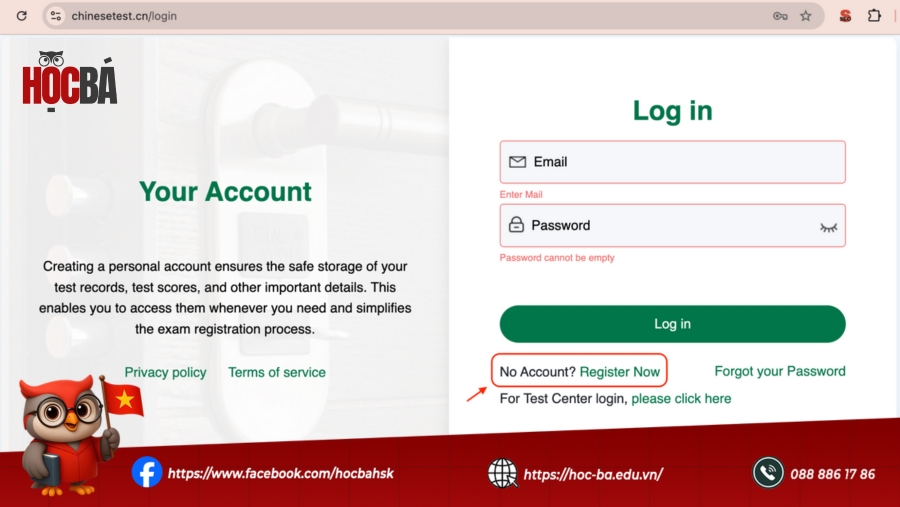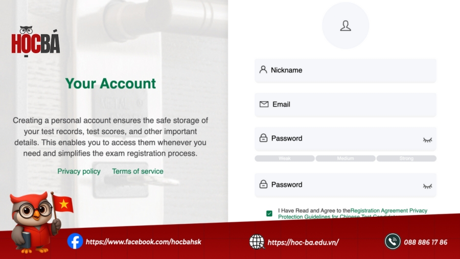 Hãy tạo tài khoản hoặc đăng nhập để bắt đầu đăng ký và quản lý kỳ thi HSK 3 online