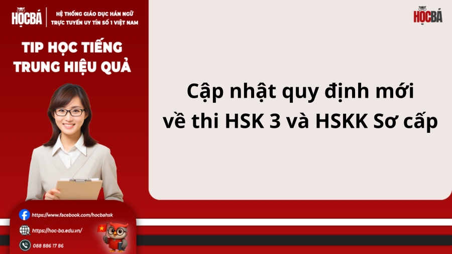 Từ năm 2021 - 2022, quy định mới của Trung tâm Khảo thí Hán ngữ Quốc tế (CTI) yêu cầu thí sinh thi HSK 3 bắt buộc phải thi HSKK Sơ cấp kèm theo, cùng một đợt thi. Điều này giúp đảm bảo người học được đánh giá đủ 4 kỹ năng: Nghe - Nói - Đọc - Viết, thay vì chỉ 3 kỹ năng như trước đây.