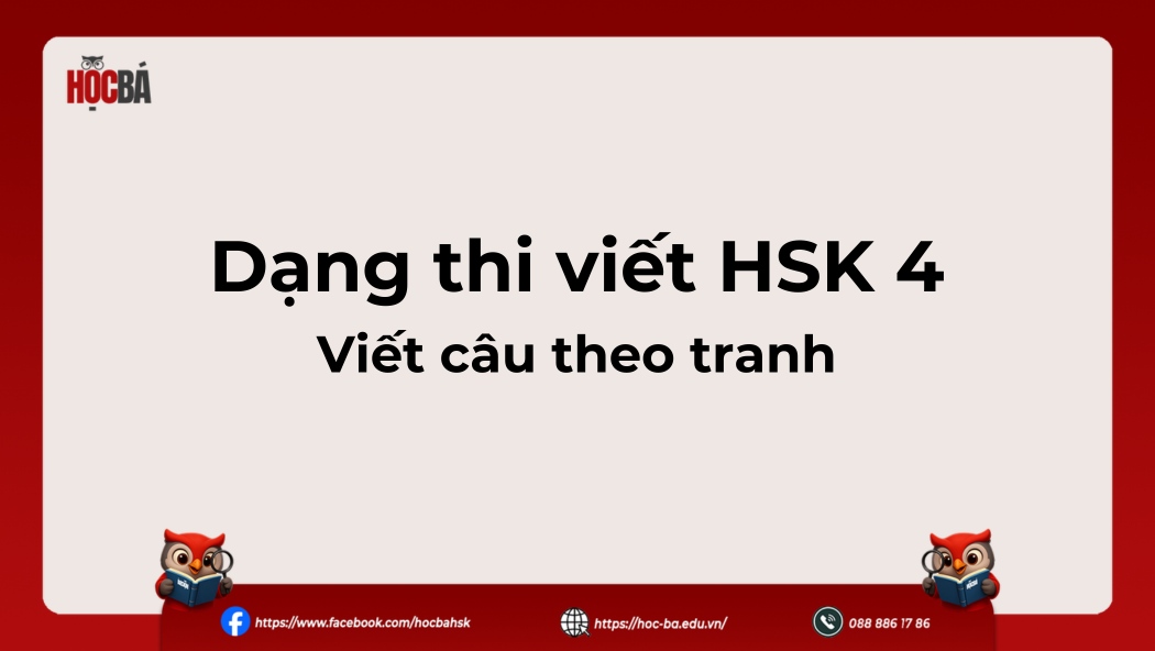 Dạng bài viết câu theo tranh chiếm 50/100 điểm trong phần viết HSK 4 và được đánh giá là khó nhất. Ở dạng bài này, thí sinh không chỉ cần hiểu nội dung bức tranh mà còn phải vận dụng chính xác từ gợi ý, chữ Hán và ngữ pháp để viết thành một câu hoàn chỉnh, đúng nghĩa.