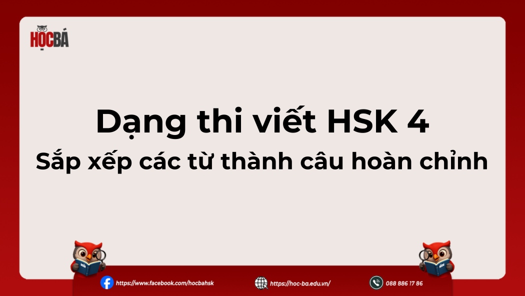 Phần thi viết HSK 4 chiếm 100/300 điểm và ảnh hưởng lớn đến kết quả cuối cùng của bài thi. Để đạt chứng chỉ HSK 4, thí sinh cần đạt tối thiểu 60/100 điểm phần Viết và 180/300 điểm tổng của ba kỹ năng Nghe - Đọc - Viết. Trong bài viết này, Học Bá Education sẽ phân tích cấu trúc, cách tính điểm và phương pháp làm bài từng dạng câu hỏi, đồng thời cung cấp bài tập luyện viết HSK 4 giúp người học ôn tập hiệu quả và tự tin bước vào kỳ thi.